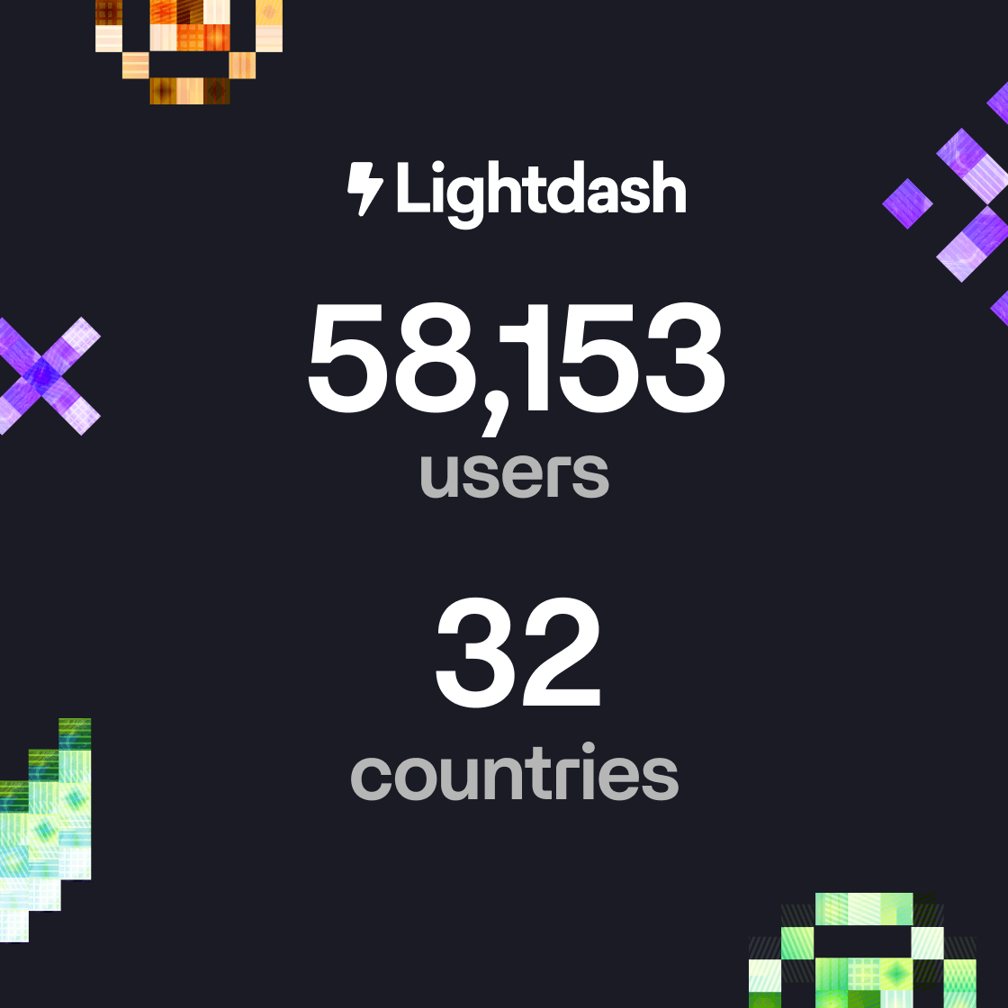 We reached 58,153 users across 32 countries. That's customers across 12 time zones, which means someone is always online, probably making a chart. And someone at Lightdash is always awake to help when you need it.